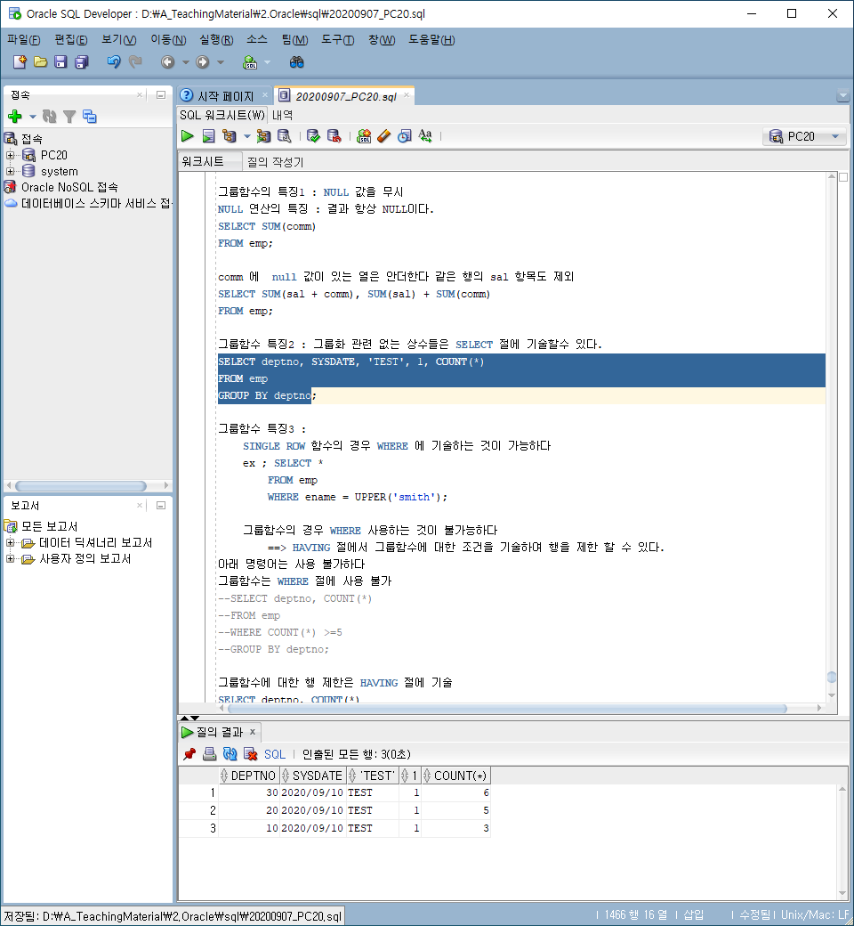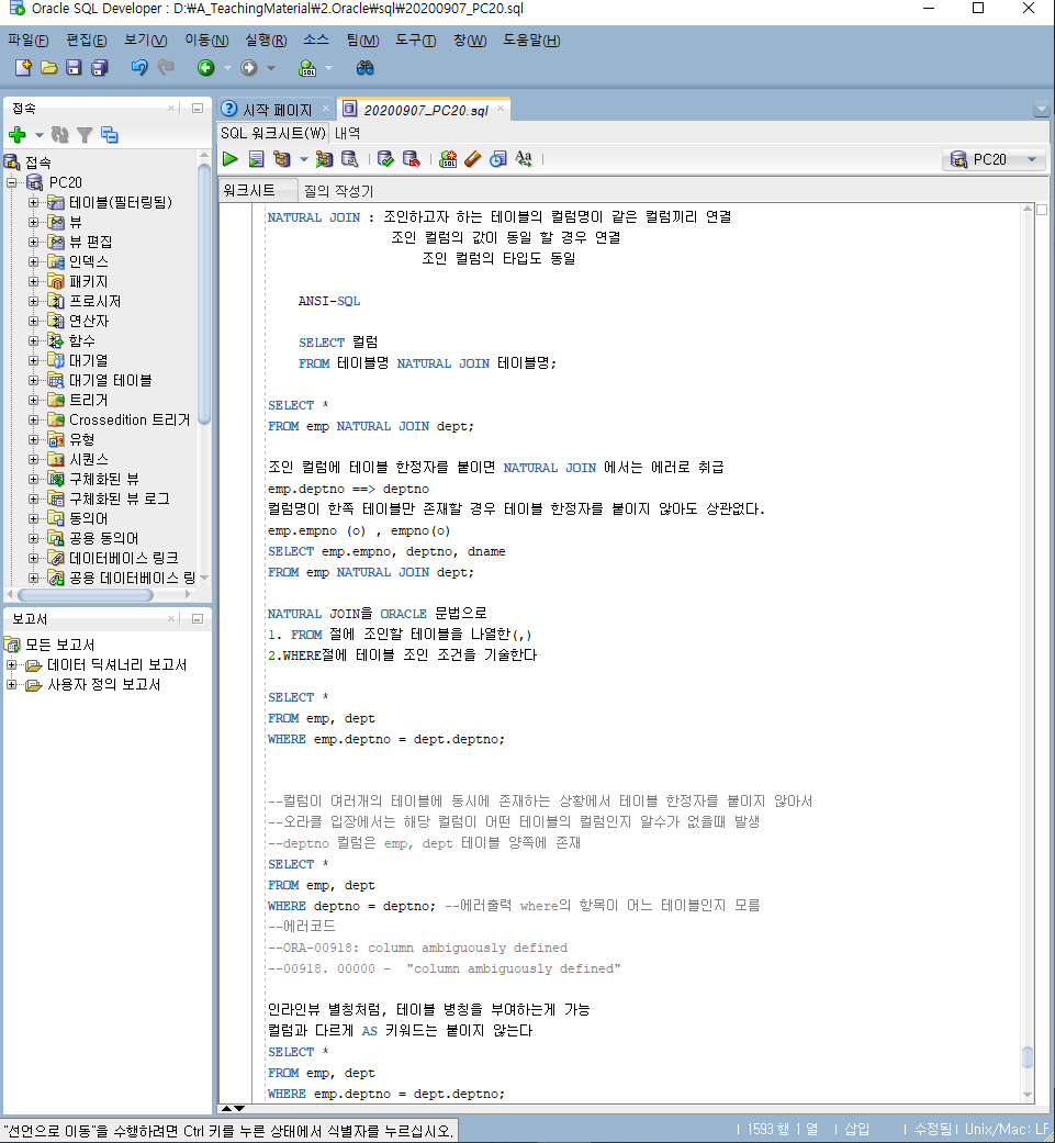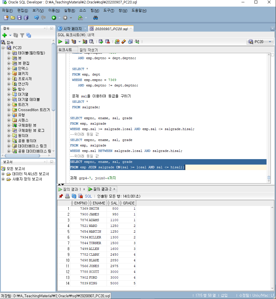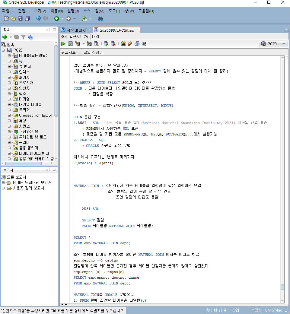[SQL] 20200910 sql 그룹함수(MIN/MAX/AVG/SUM/COUNT) /HAVING/join/naturaljoin/joinon/nonequijoin/joinusing 본문