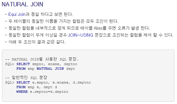 -- Sql(JOIN USING, NATURAL JOIN 동일함)