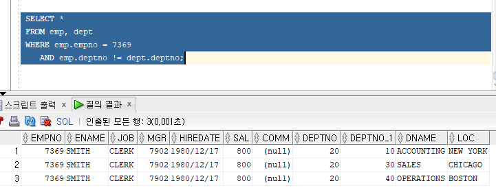 SELECT e.empno, e.ename, d.deptno, d.dname