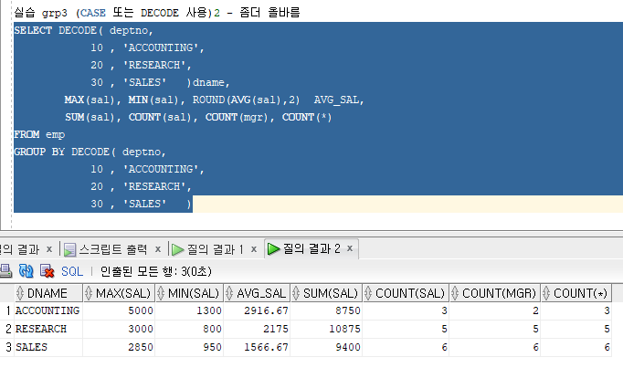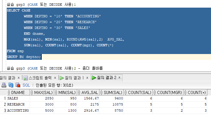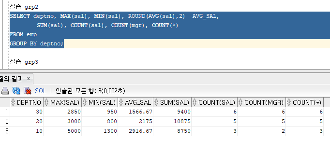 [SQL] 20200910 sql 그룹함수(MIN/MAX/AVG/SUM/COUNT) /HAVING/join/naturaljoin/joinon/nonequijoin/joinusing