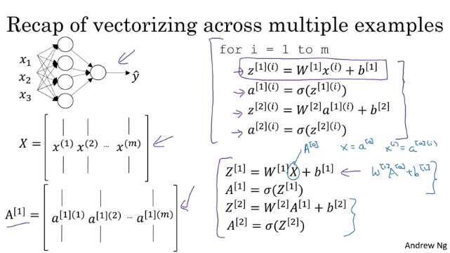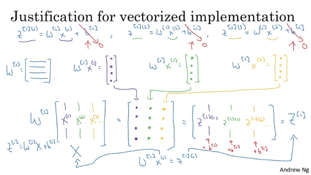 - 첫훈련샘플 i = 1 인경우 Z^{1}(i) = W^[1](i)x[1](i)+b[1](i)