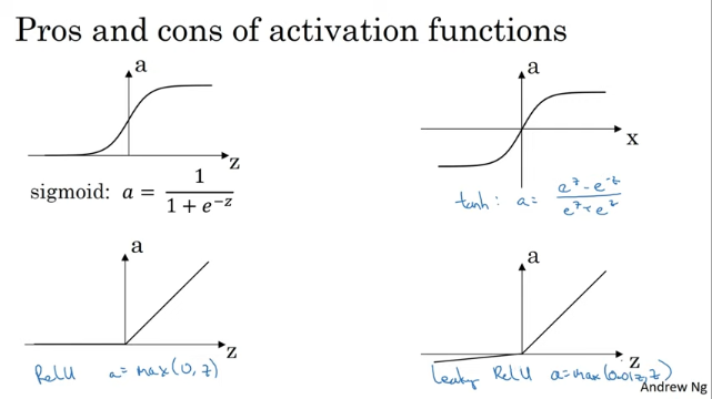 - ReLU의 단점 중 하나는 z가 음수일 때 도함수가 0이라는 것