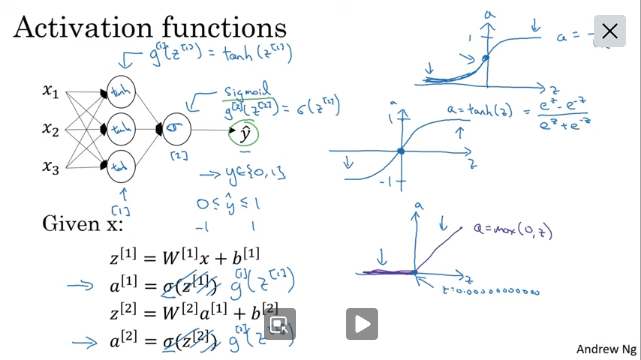 - sigmoid a=1/(1+e^−z)
