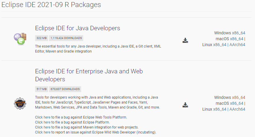 1.2 이클립스 설치 > https://www.eclipse.org/downloads/