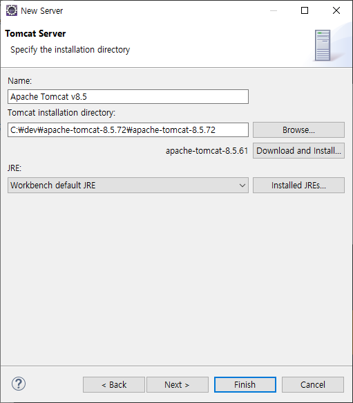 *안정적 버전 및 책에선 8버전 > 현재 최신 8.5.72