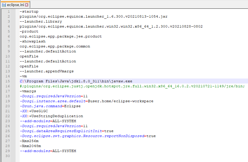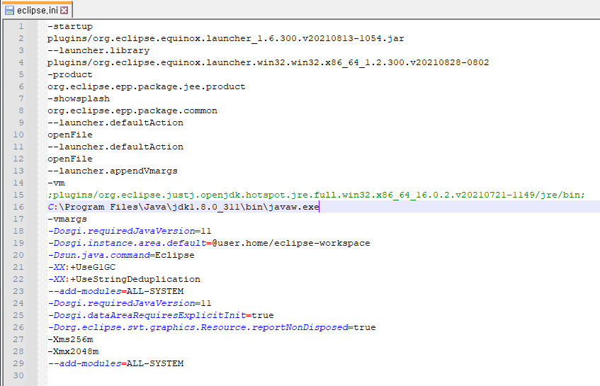 수정하고 저장하고 이클립스 재실행!