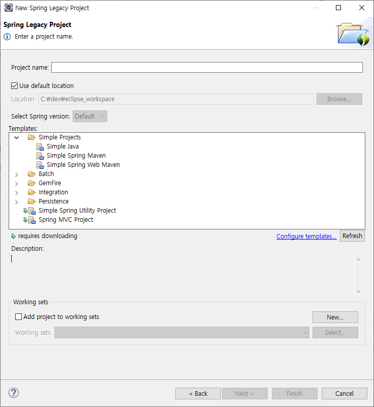 Templates 가 안 보였는데..(비활성), 이클립스 업데이트 누르니 다시 보인다.....