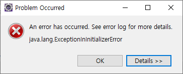 An error has occurred. See error log for more details. java.lang.ExceptionInInitializerError