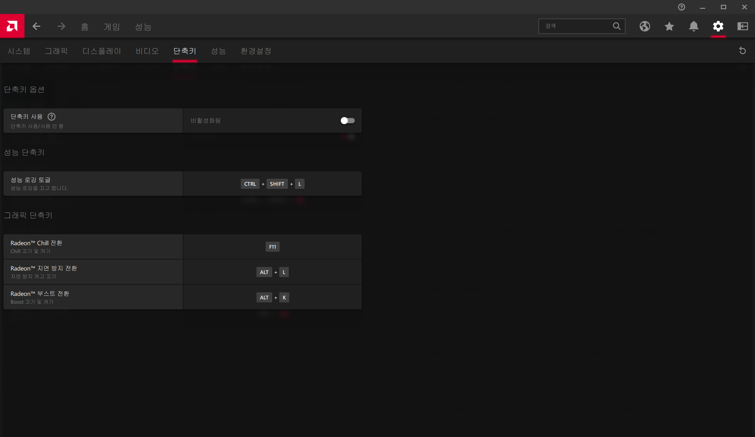 [Windows] AMD 라데온 그래픽 카드 성능 로깅 시작/중지 단축키 미사용 설정 비활성 RADOEN 본문
