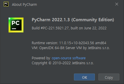 pycharm 의 경우도 최신 버전을 사용하고 있습니다.