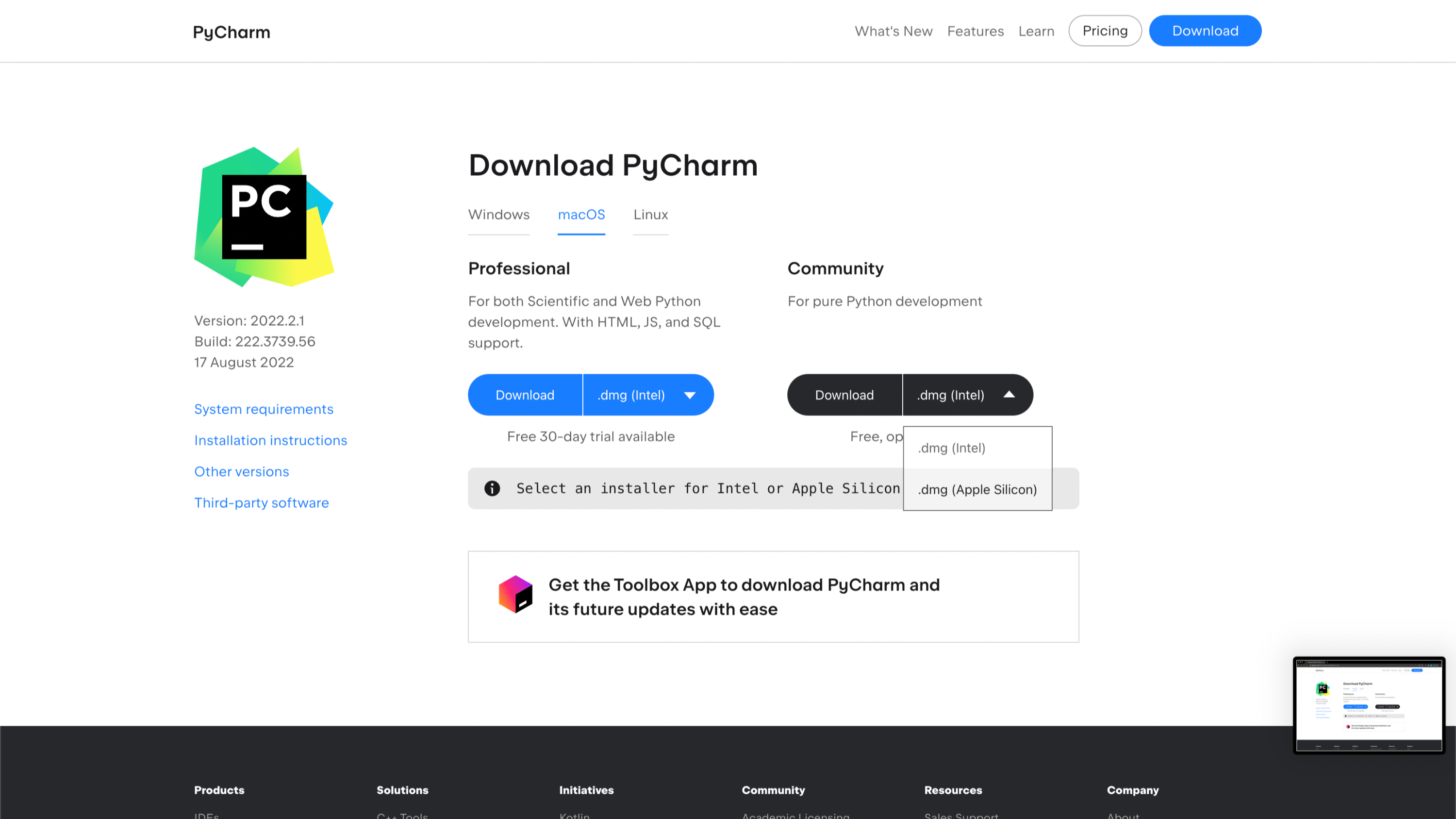 https://www.jetbrains.com/pycharm/download/#section=mac