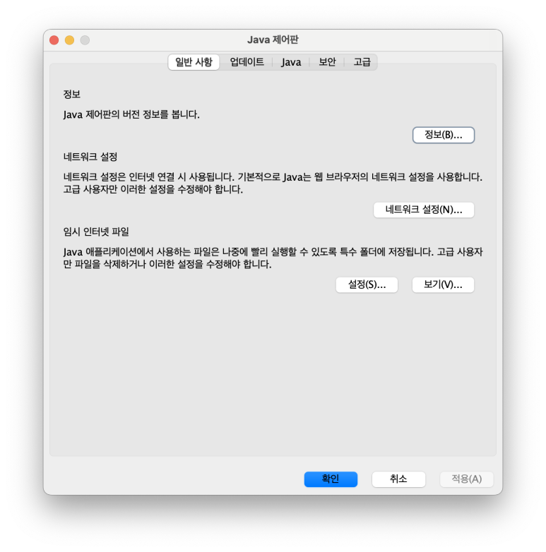 1. 자바 설정 창 열기 (맥북 MacOs 기준)