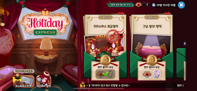 쿠키런킹덤 홀리데이 익스프레스 챕터2-6 승객 쿠키들 조사하기 4 - 크리스마스 특급열차 공략 쿠킹덤 챕터2 최종 보상
