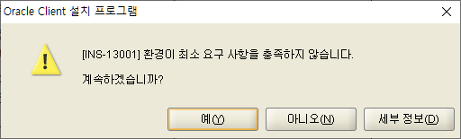 ‘최소요구사항 충족하지 않습니다.’> ‘예’> ‘instant client’