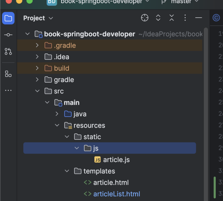 실제 폴더 구조로는 resources > static > js 폴더로 구성되어 있는데요.