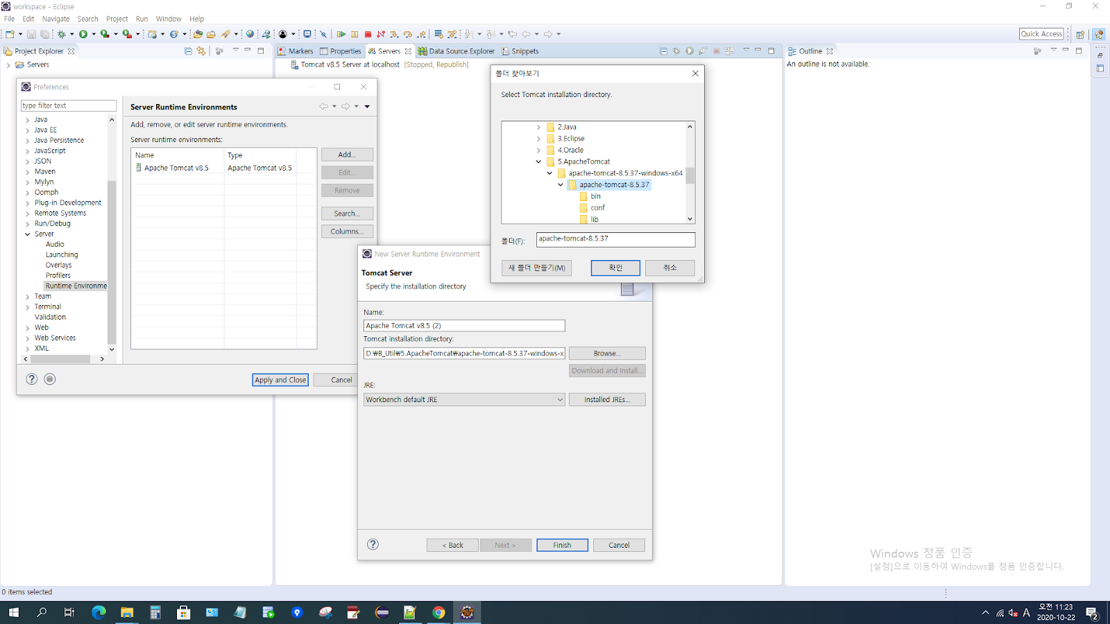 해당 버전의 톰캣의 압축푼 폴더찾고 설정