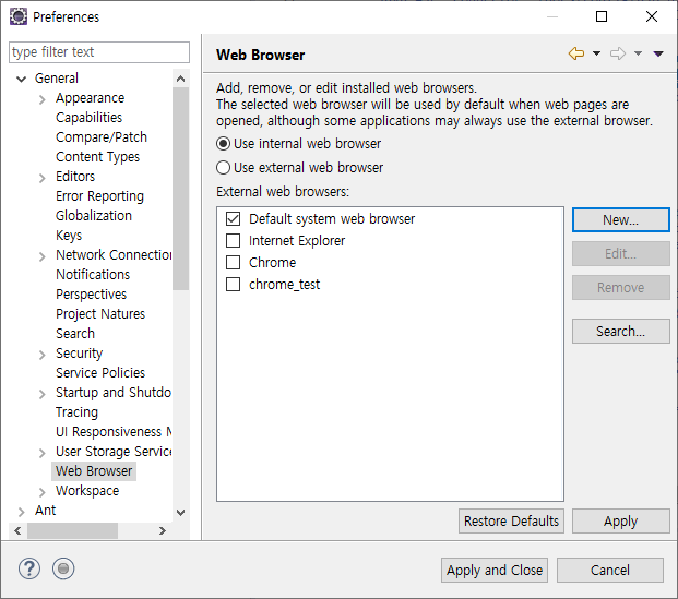 HTML 실행시 이클립스 내부실행 또는 외부브라우저로 실행 가능