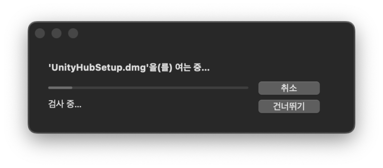 맥용 유니티 설치를 위해 UnityHubSetup.dmg를 다운받게 됩니다.