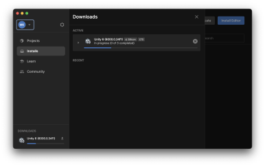 설치된 항목이 확인되며, 방금 설치한 unity 6 를 확인할수 있었습니다.