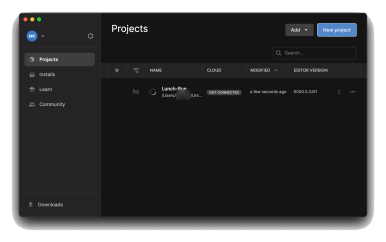 이어서 목록에 프로젝트 생성이 되며, 유니티 엔진 실행 안내가 되는 이미지 창을 확인하게 됩니다.