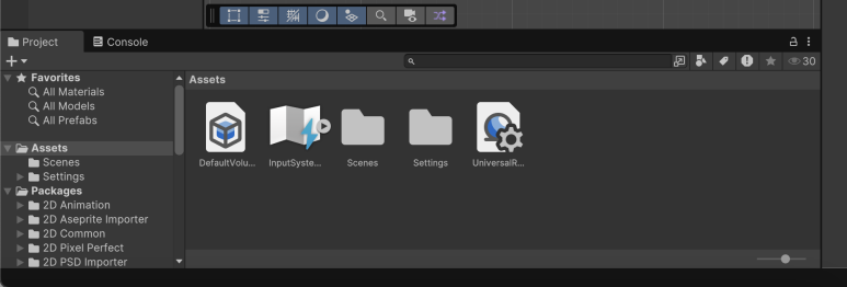 시간이 조금 걸리며, 완료되면 아래 스크린샷인 유니티 프로젝트 화면을 보게 됩니다.