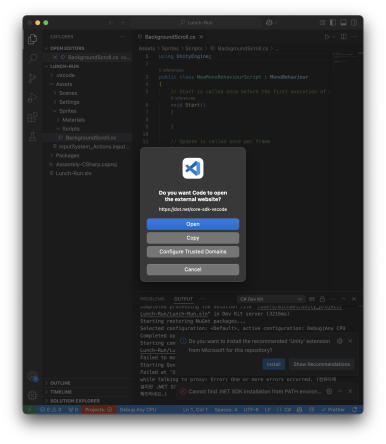알림창에 유니티 Unity 익스텐션 설치 안내를 확인하게 되는데요.