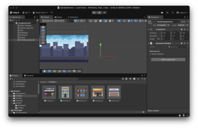 추가된 spawner 게임 오브젝트 객체에 5개의 건물이미지를 요소로 넣습니다.