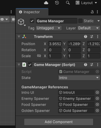 이어서 게임 매니저의 참조 부분에 항목을 추가합니다.