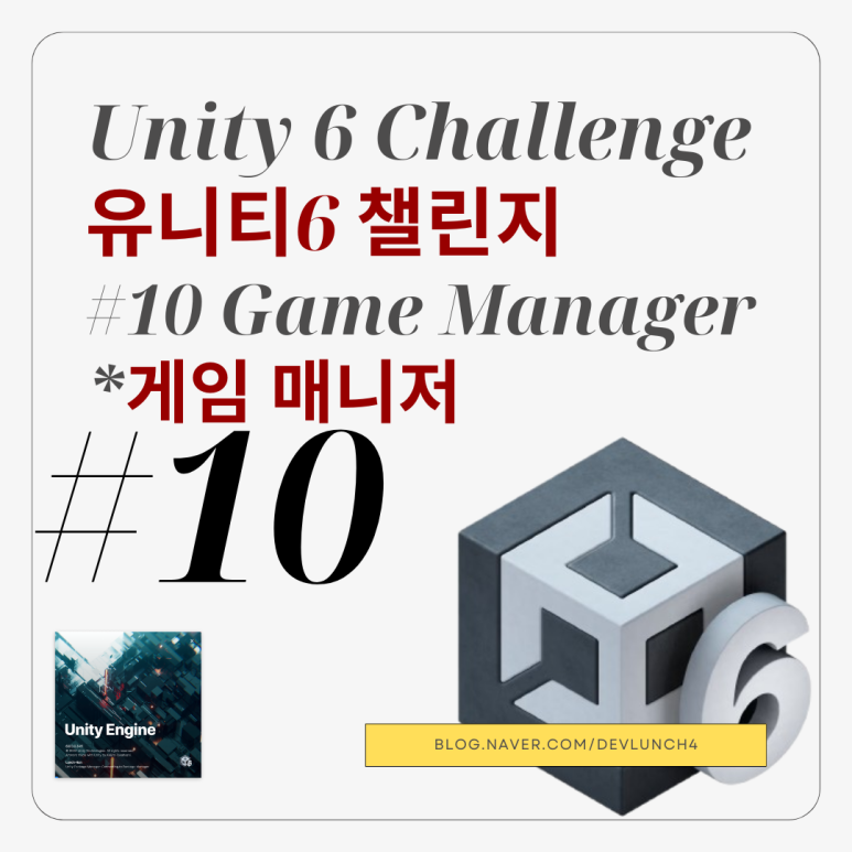 devlunch4 2025. 1. 22. 23:54유니티6 챌린지 게임만들기10- Unity 6 게임매니저 game manager - Unity 6 Challenge Start