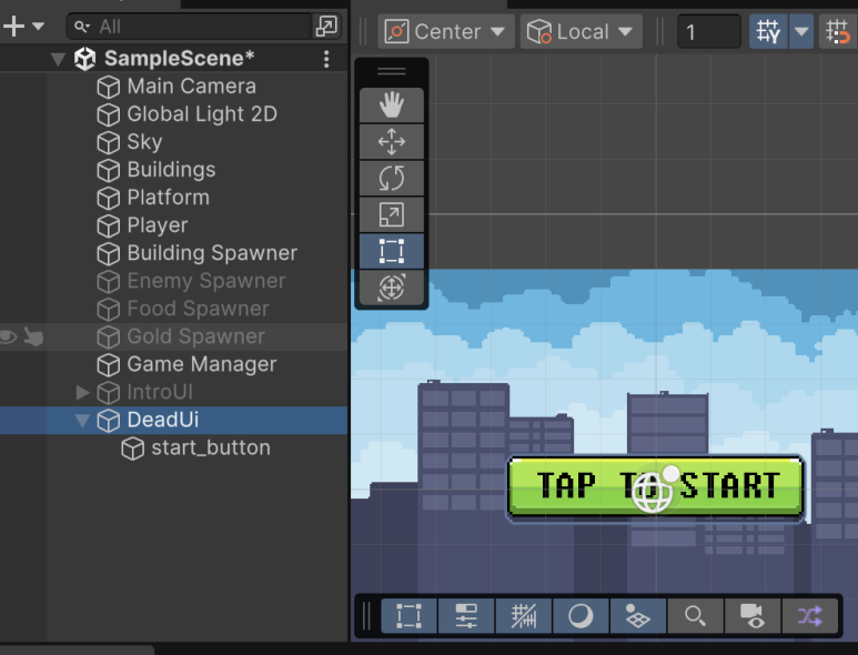먼저 DeadUI 객체를 생성후 스타트버튼 이미지를 추가합니다.