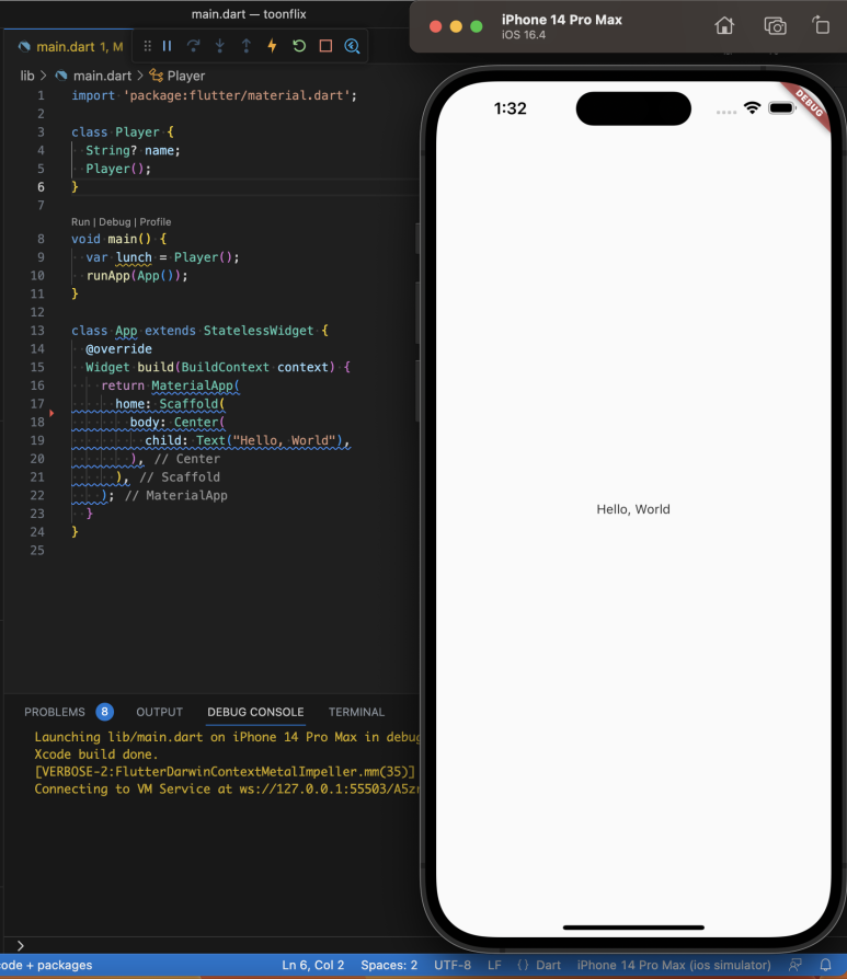 아이폰 에뮬레이터에서 항목을 클릭시 해당 항목을 vsCode에서 확인 및 보여줍니다.