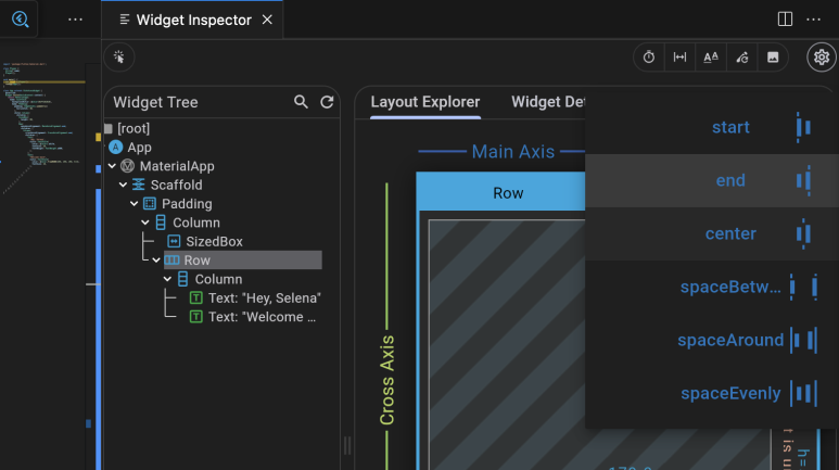 mainAxisAlignment: MainAxisAlignment.spaceBetween,