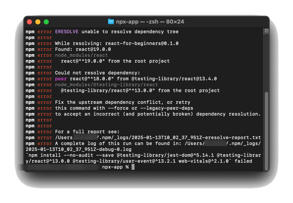 npm error /Users/##/.npm/_logs/2025-01-13T10_02_37_951Z-eresolve-report.txt