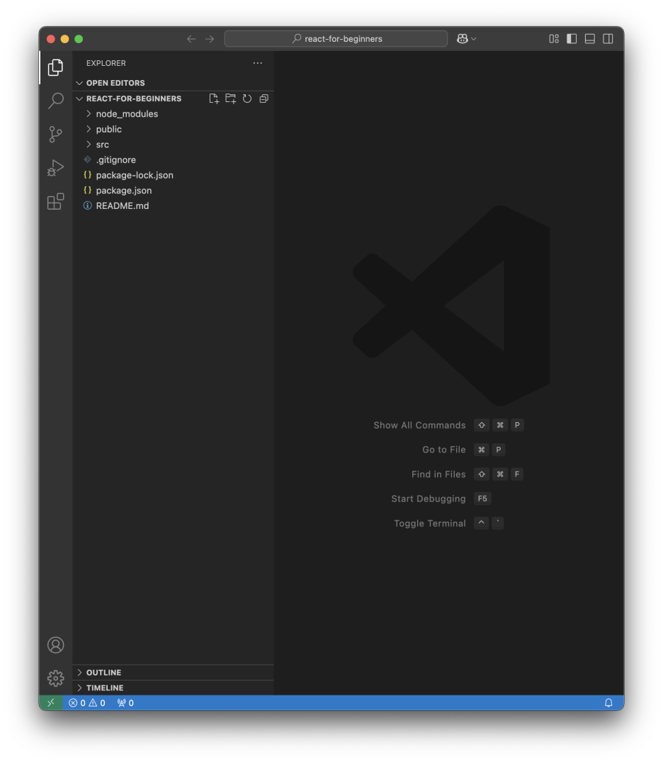 생성된 리액트 앱 경로로 vscode에서 열어줍니다.