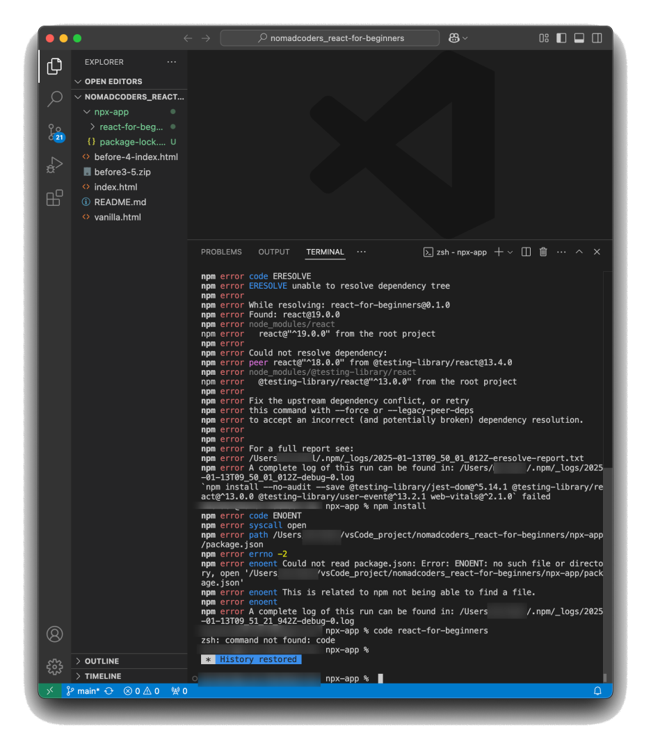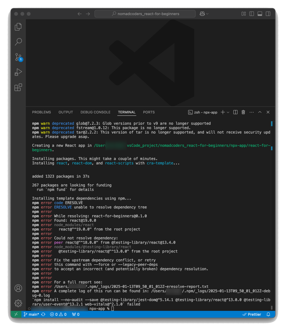 npm error path /Users/##/vsCode_project/nomadcoders_react-for-beginners/npx-app/package.json
