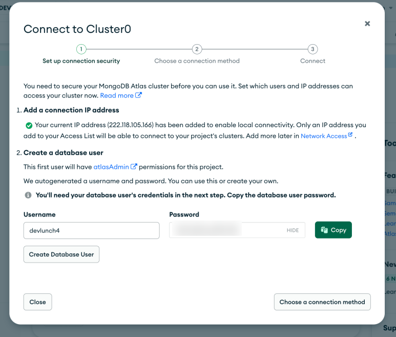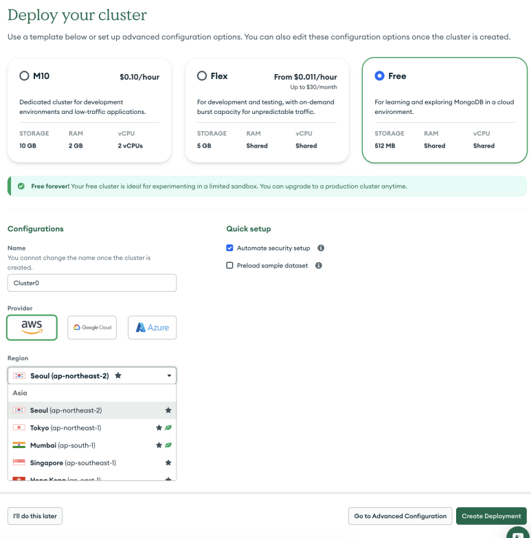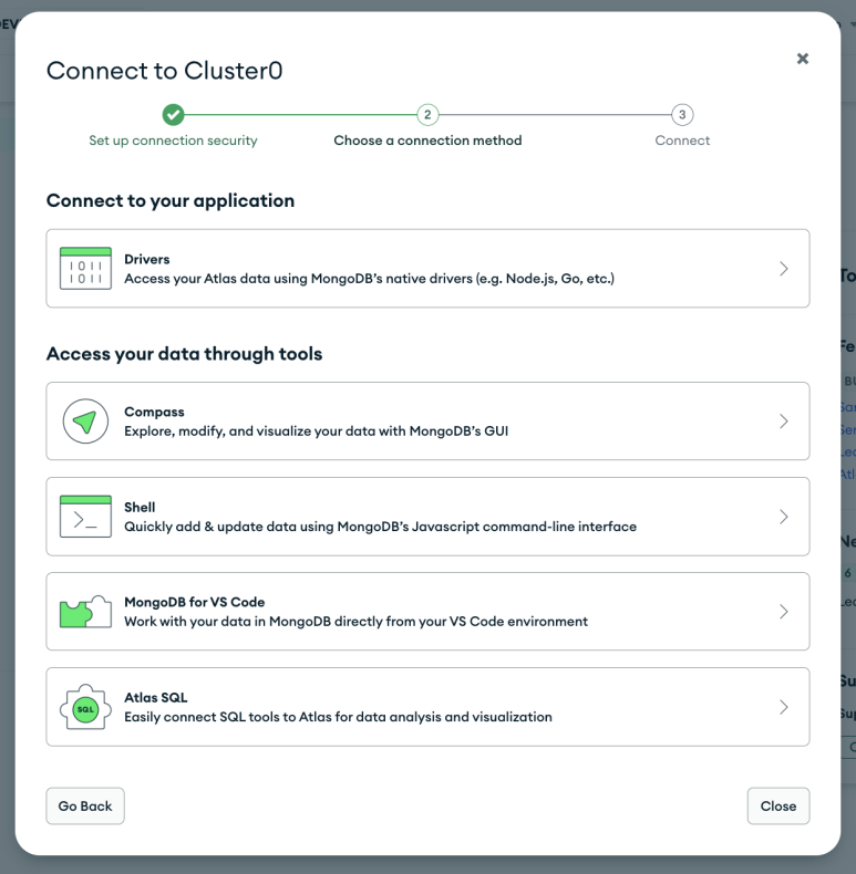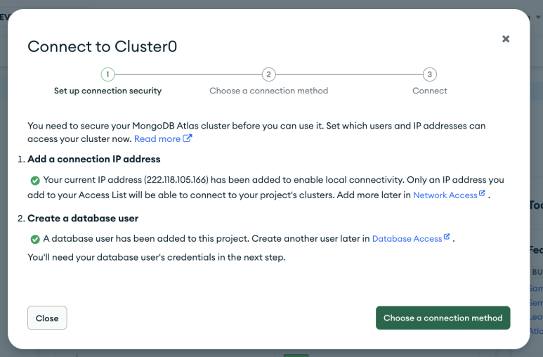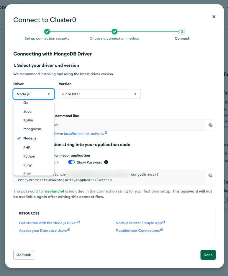 이후 몽고디비 웹사이트 팝업의 DONE 버튼 선택