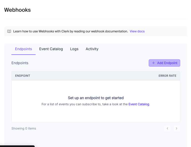 생성된 엔드포인트에서 Signinig Secret 보기하고 비밀번호 복사