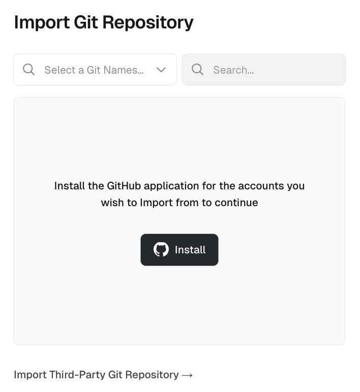 녹색 인스톨버튼을 누르고 vercel 페이지에서 임포트 버튼을 선택한다.