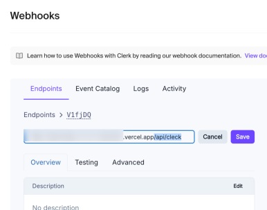 주의할것은 주소 뒤에 /api/clerk 를 추가한다.
