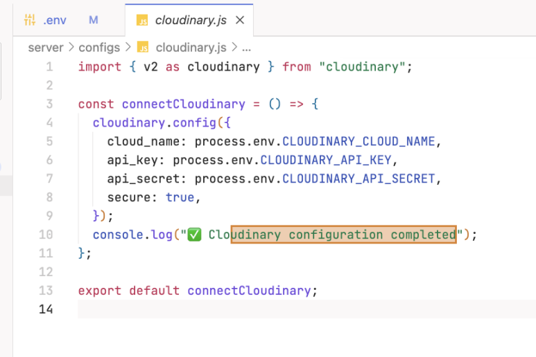 이어서 연결을 위한 connectCloudinary.js 파일을 작성합니다.