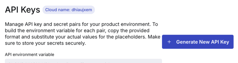 클라우드이름은, API, API secret 값을 추가합니다.