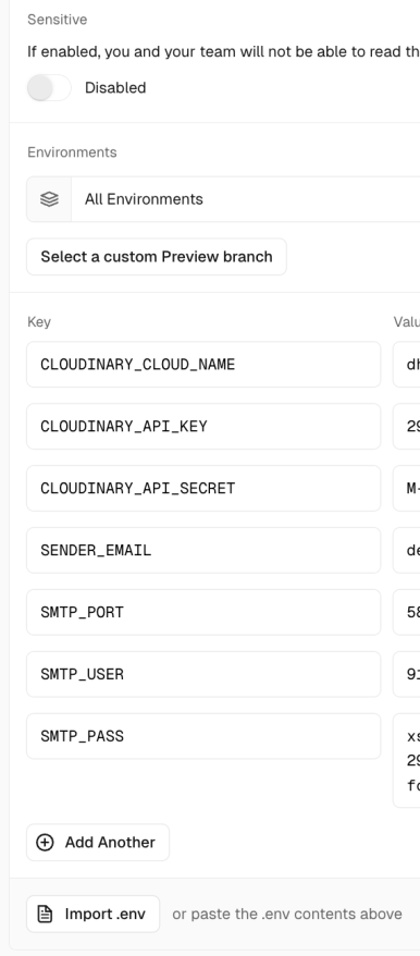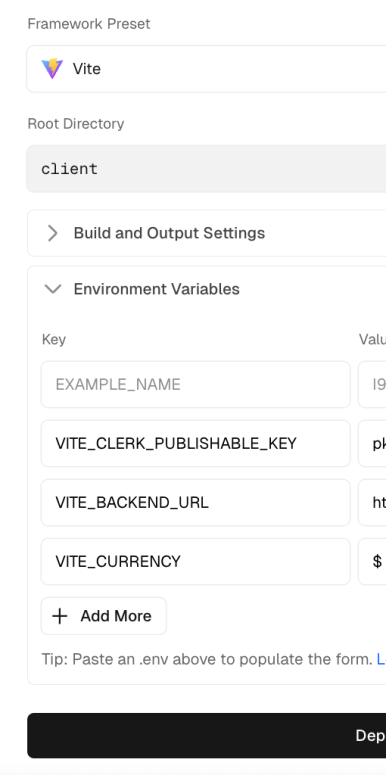 복사한 백엔드 vercel 링크를 클라이언트 폴더의 환경변수 파일에 값을 넣습니다.
