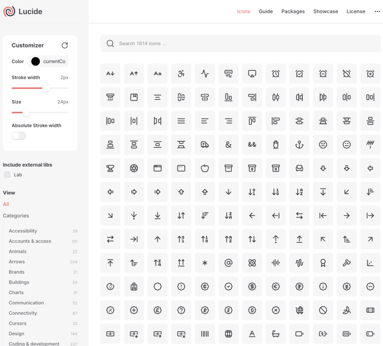 Lucide 공식 웹사이트 (아이콘 검색 및 미리보기):