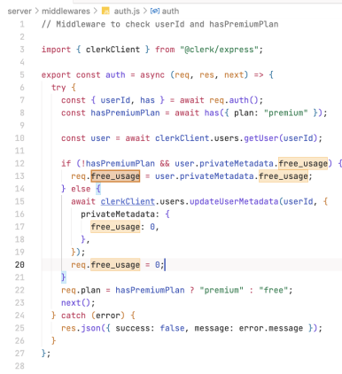미들웨어로 인증에 사용할 소스 작성 auth.js