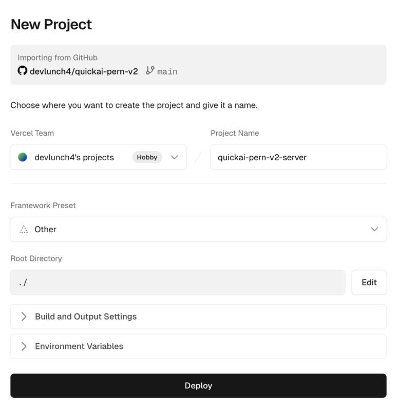 PERN - 08 vercel 배포 설정 - json 환경설정 환경변수 본문