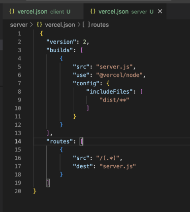 각 프로젝트내 vercel.json 파일 생성