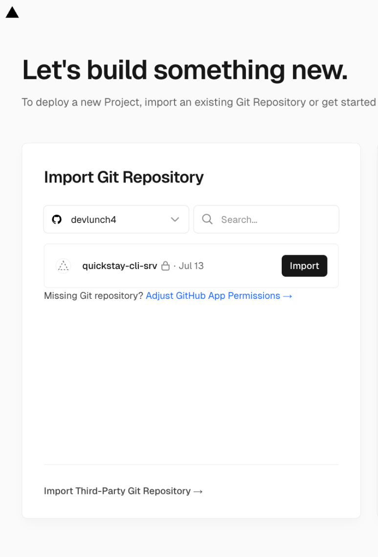 깃험 계정연동을 하거나 아래 서드파티를 선택하고 링크주소를 넣어 import