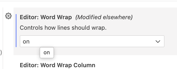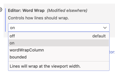 Editor 항목에 word Wrap 항목이 검색된다.