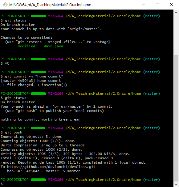 원격저장소에서 가져오기(/d/A_TeachingMaterial/2.Oracle/home ‘에 저장