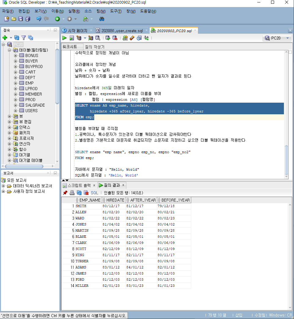 [sql] 20200902 sql 접속/테이블/저장/select/문자열 결합 본문